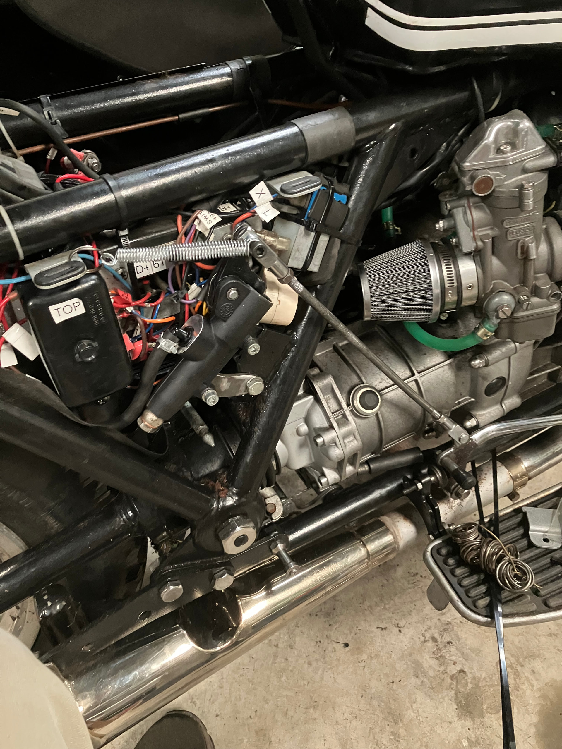 Reverse bled the new to me front 4 pot brake caliper from the nipple, and then did the shorter run of the rear brake to splitter and m/c. Bled first time and gives very good brakes. The downside is how quickly the sidecar now comes around as it doesn’t have the space for an additional brake ![]()