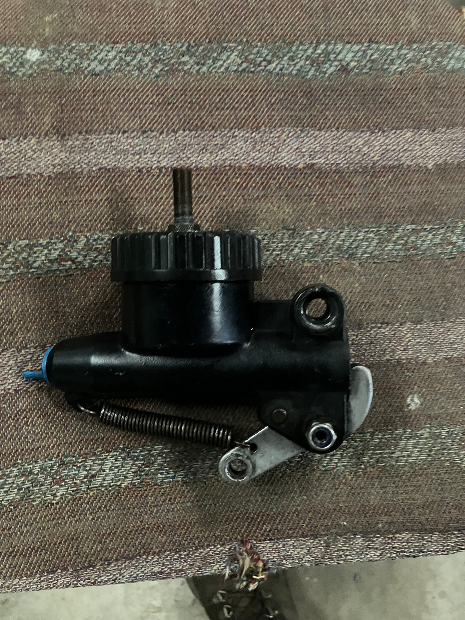 The original foot operated master cylinder works both linked brakes ok but is close to its limit because of long pedal travel. I believe a slightly larger bored cylinder would be optimal.