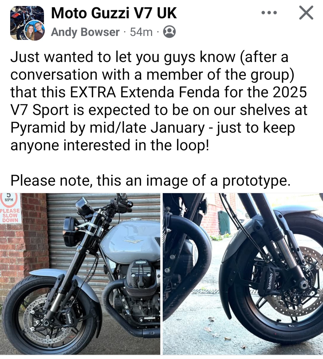 I just spoke to Pyramid and they hope to have the Fenda Extenda for the V7 Sport in production in a couple of months’ time