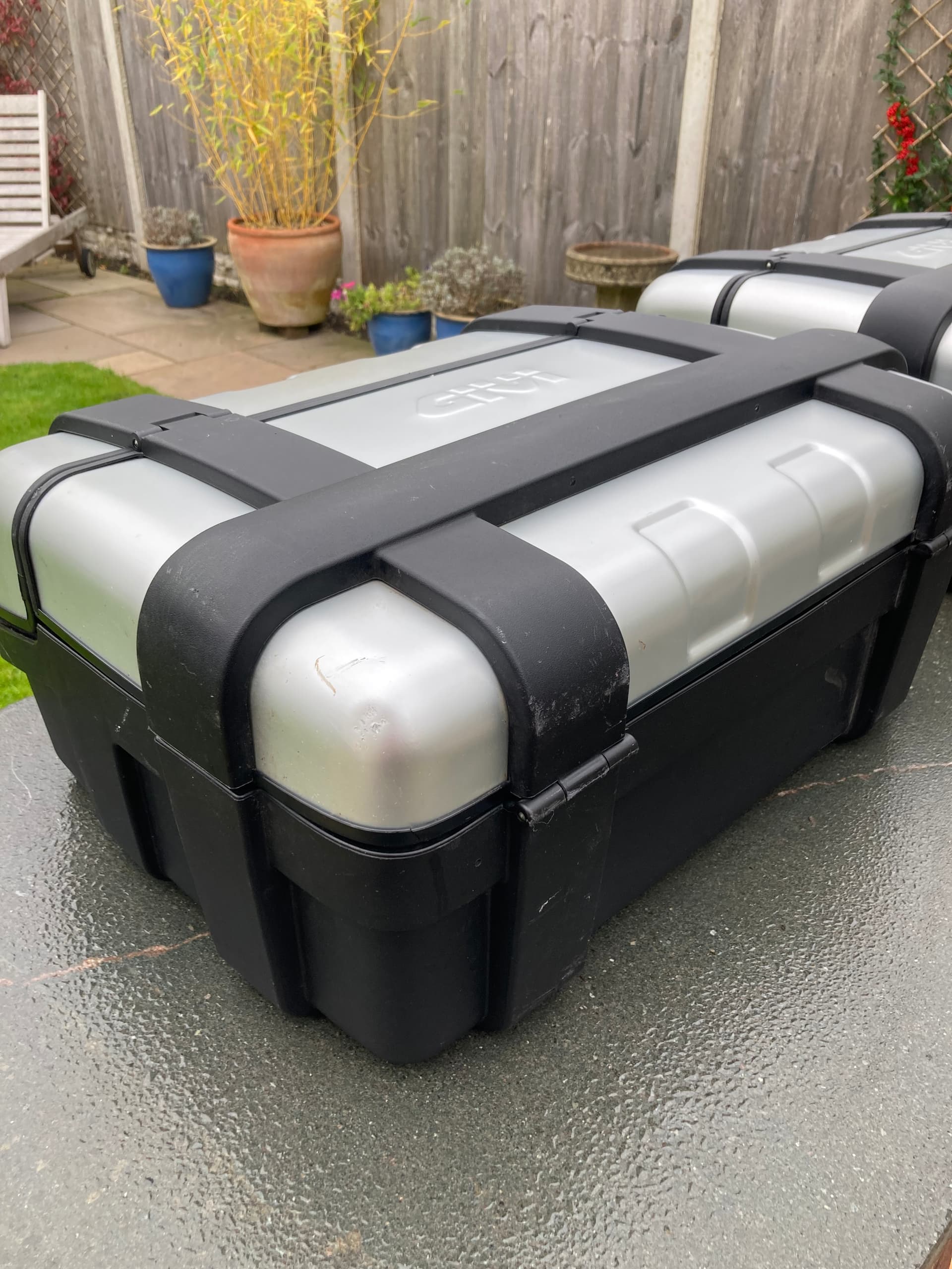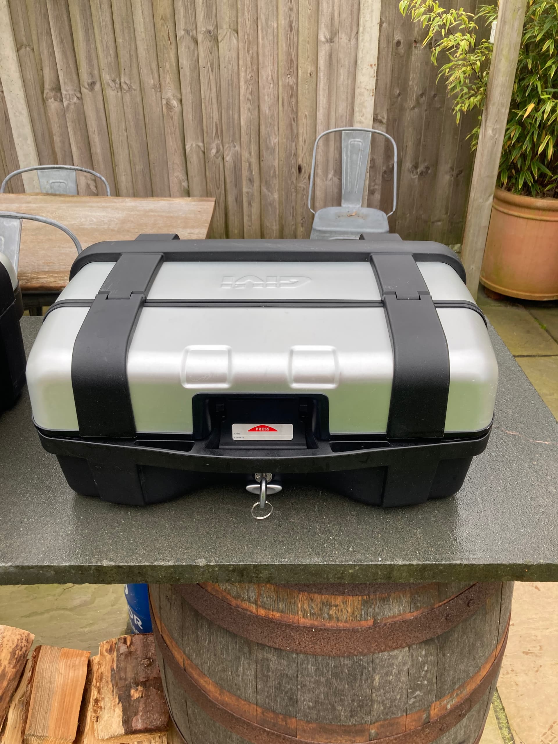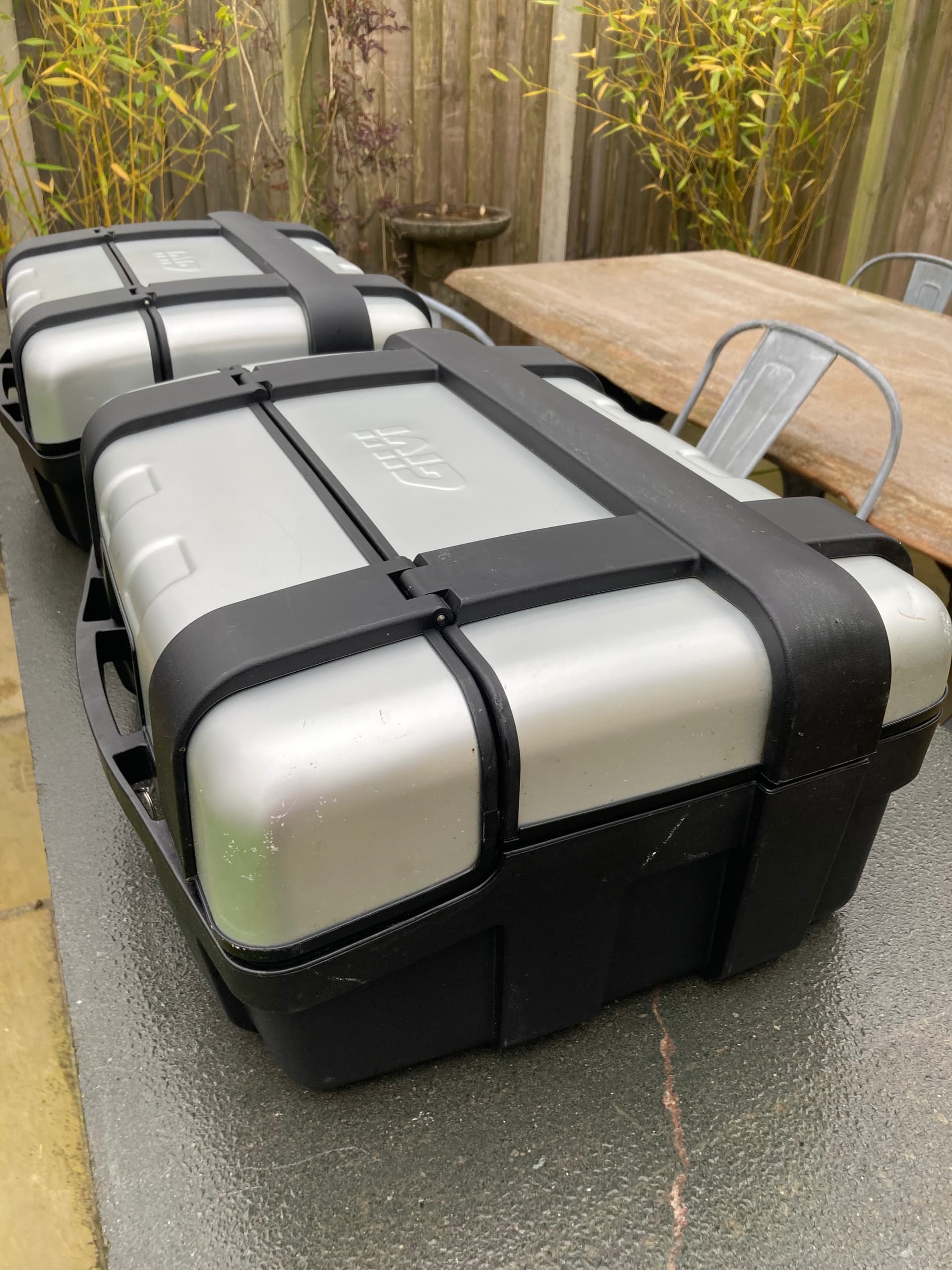 They came with a Stelvio 1200 I bought in the summer but we much prefer top opening panniers so I’ve bought some alternatives and these are now surplus to our requirements. Standard Monokey fitting these should fit any Givi monokey rack as either a top box or as panniers.