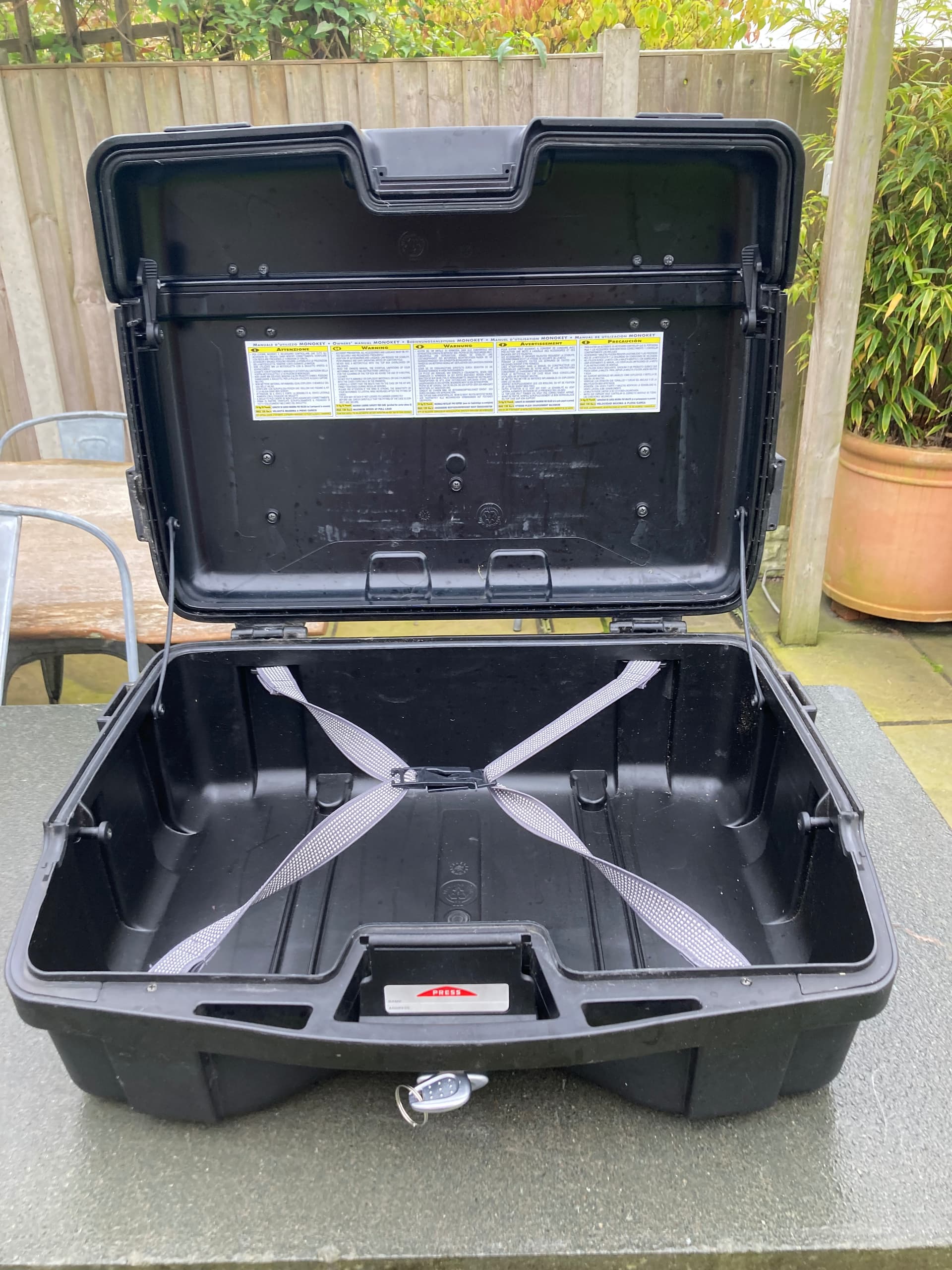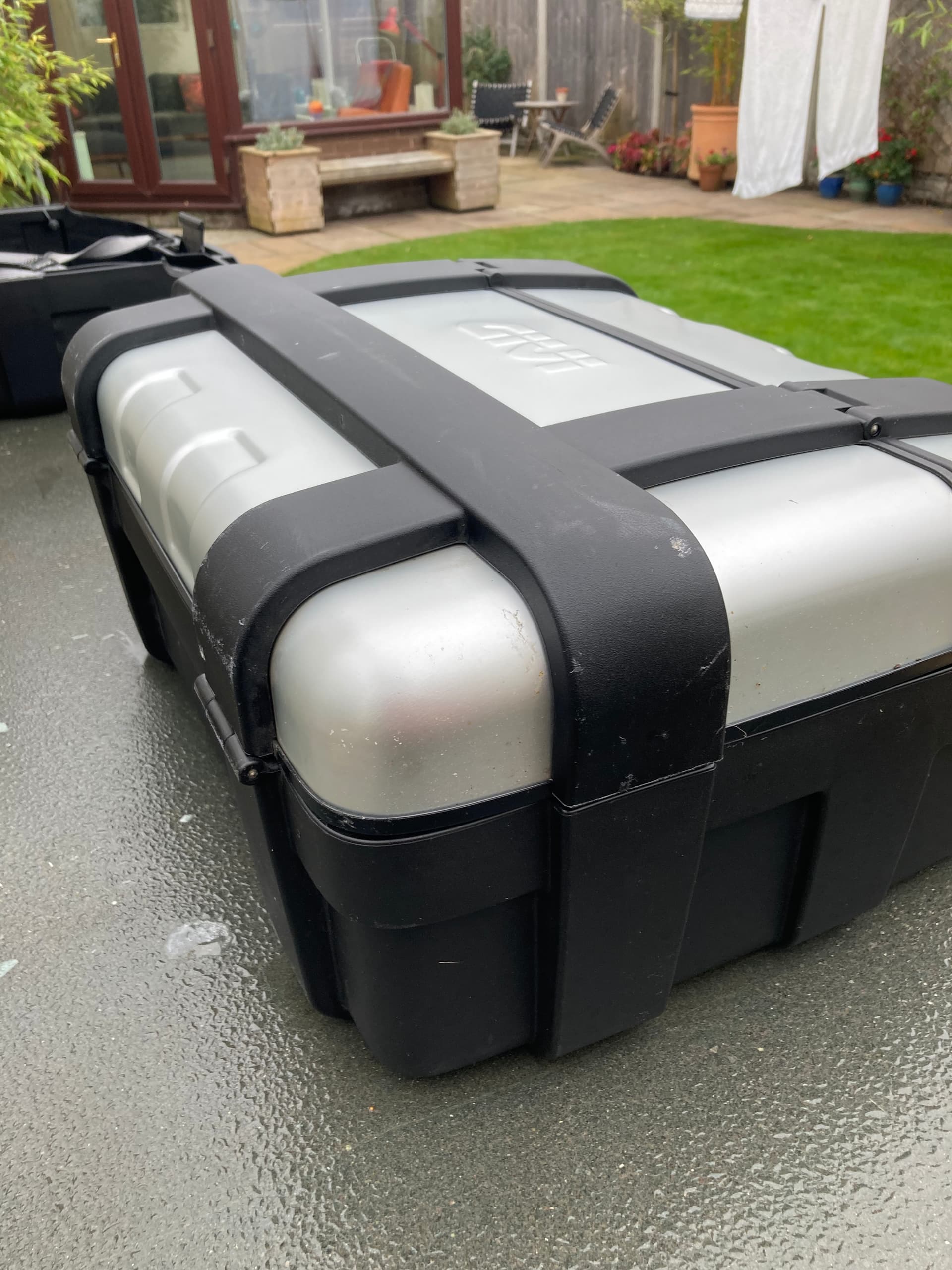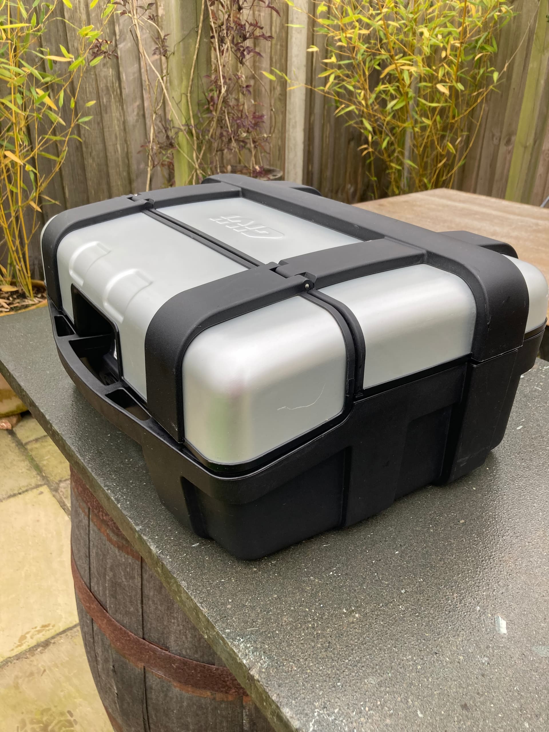 They came with a Stelvio 1200 I bought in the summer but we much prefer top opening panniers so I’ve bought some alternatives and these are now surplus to our requirements. Standard Monokey fitting these should fit any Givi monokey rack as either a top box or as panniers.