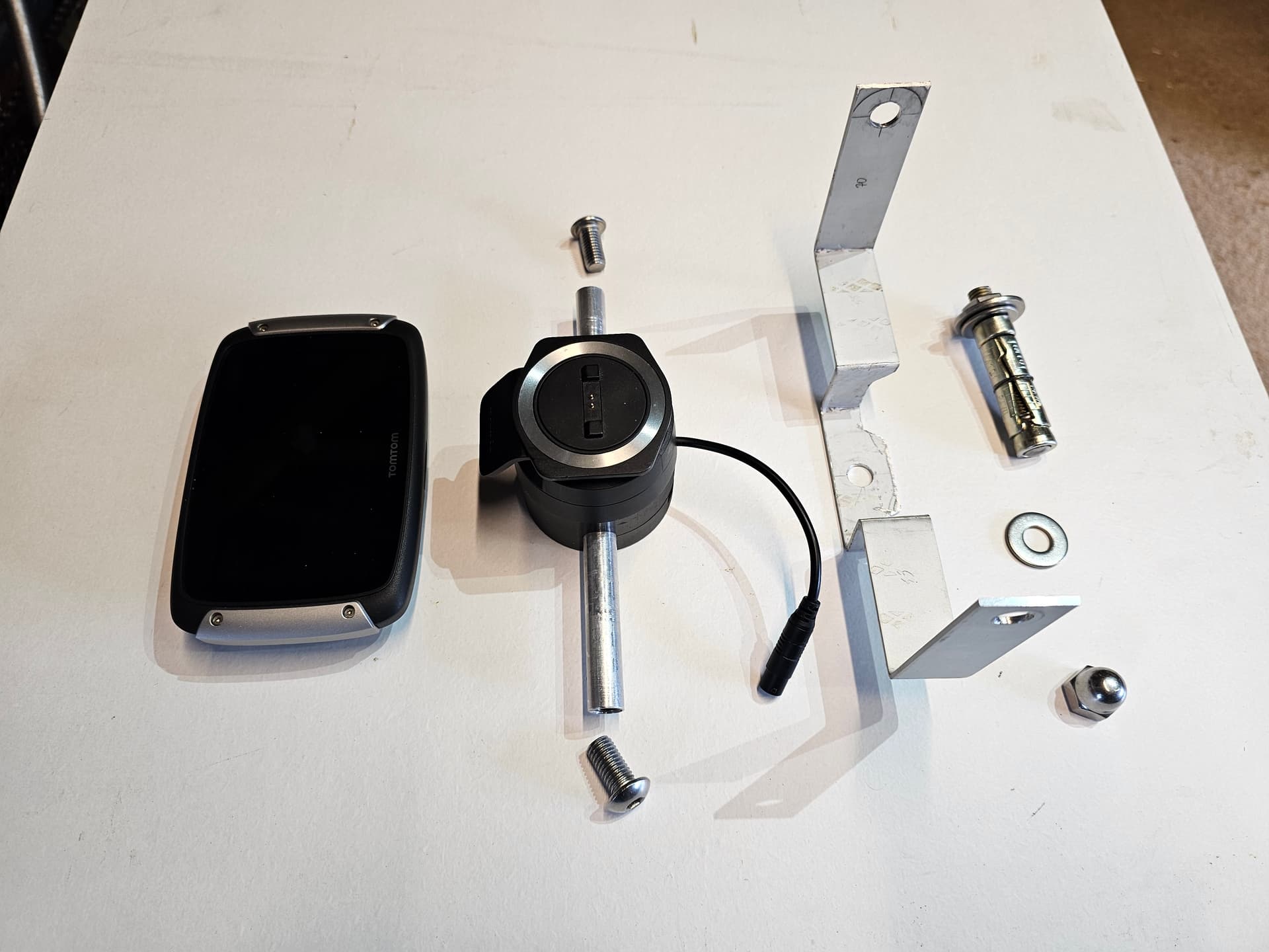 The bracket was 2mm aluminium. Tried it out yesterday on a 130 mile round trip to Ardingly show/autojumble. Worked well but needs to be stiffer. Heavy mount, tom tom and big twin vibes created a lot of wobble. Suspect it will destroy itself if left as is.So I will remake bracket in steel.