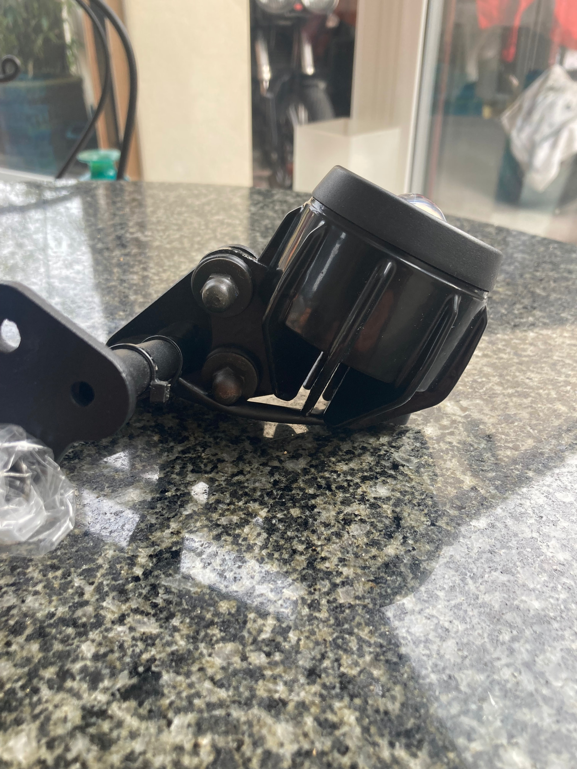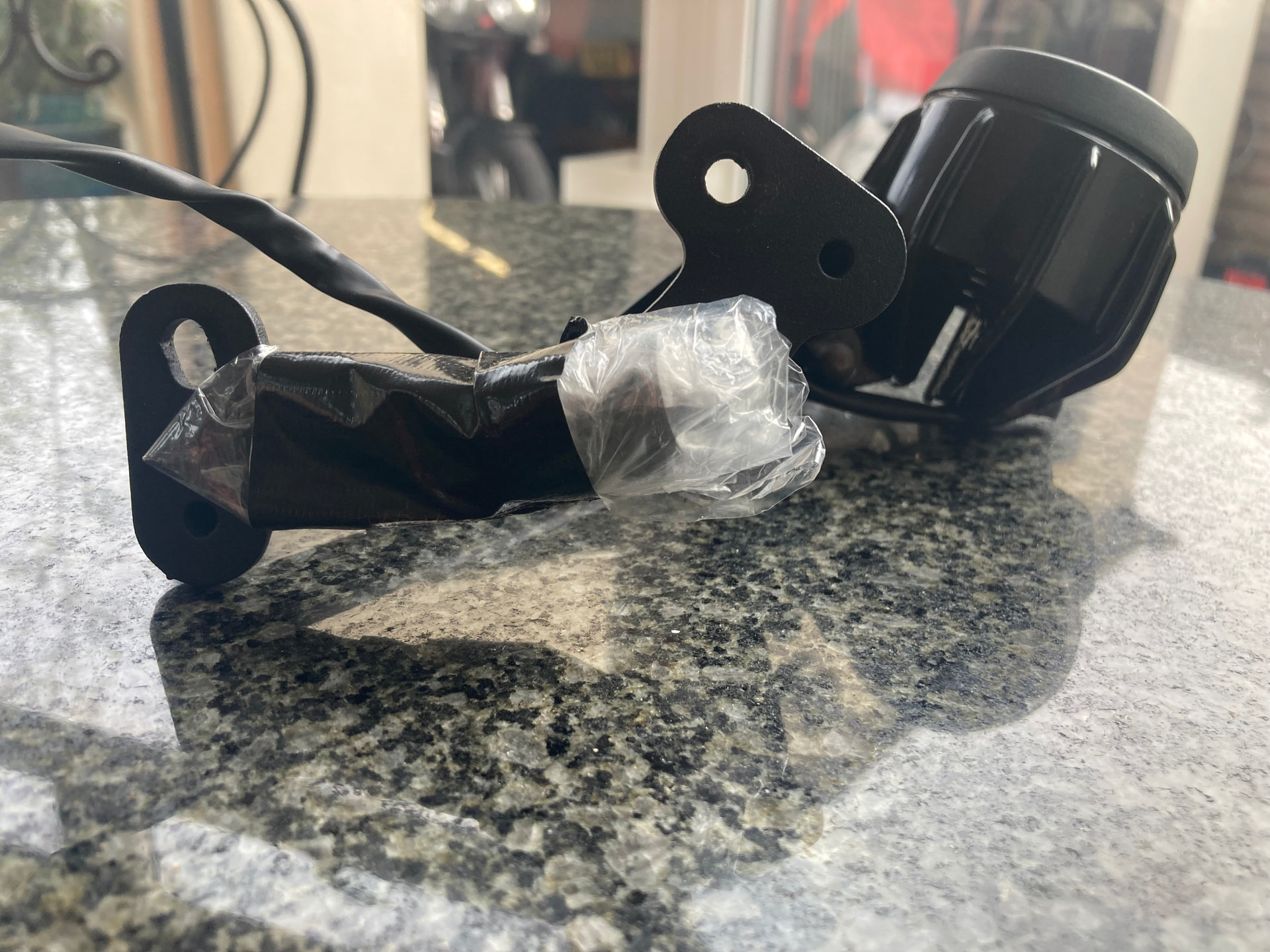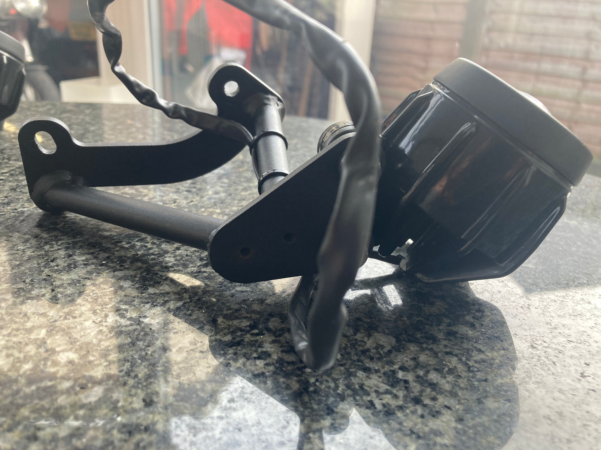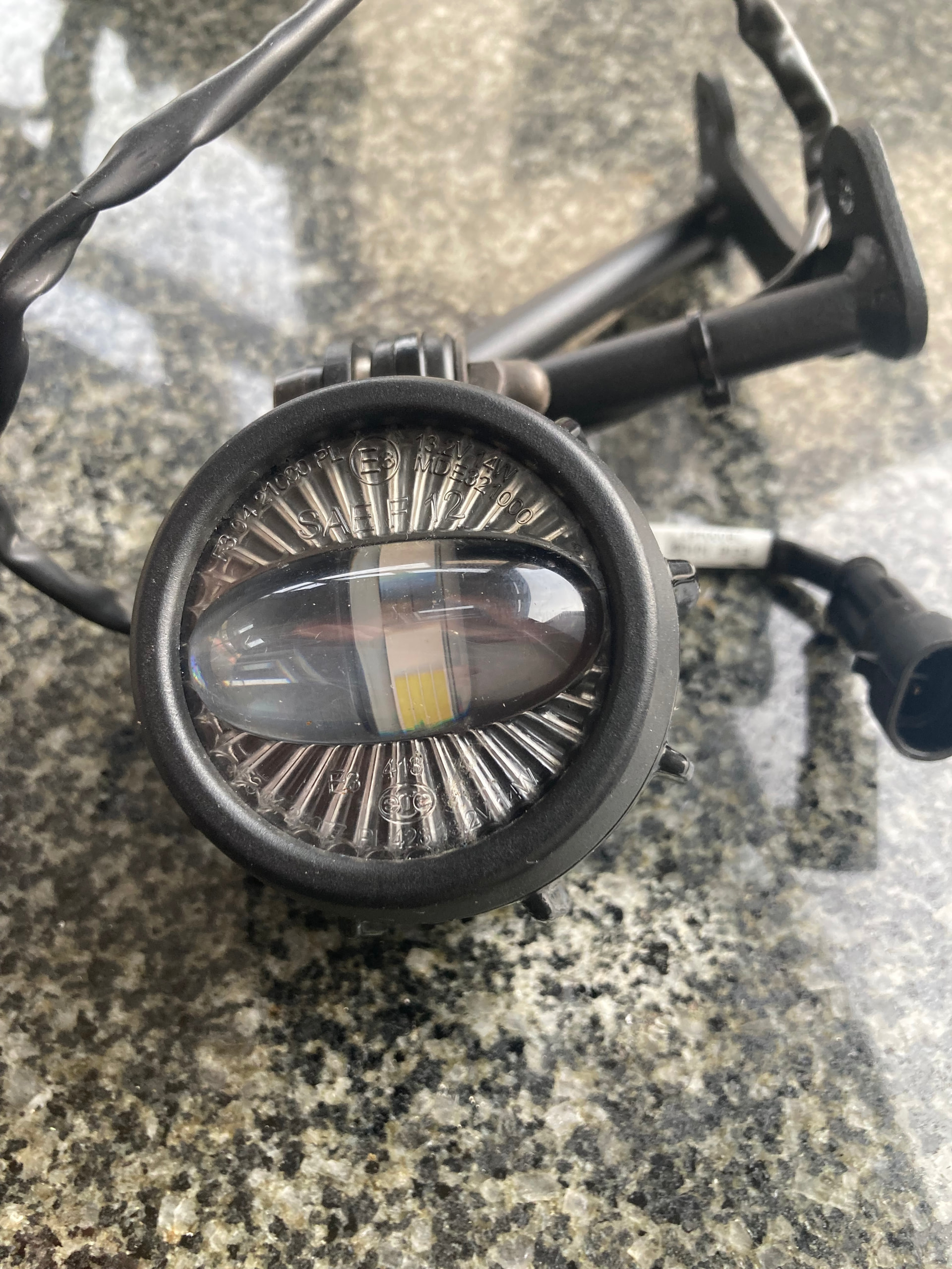 Moto Guzzi oem fog lamps set including the mounting brackets. Plug and play (plug into 2x superseal connectors behind the dash screen). Eye wateringly expensive new. Working minutes before I removed them. A bit of patched up corrosion on the body of the LH lamp, but they are aluminium alloy of some sort so won’t corrode much. Not unsightly and you don’t notice unless you know once on the bike. £200.