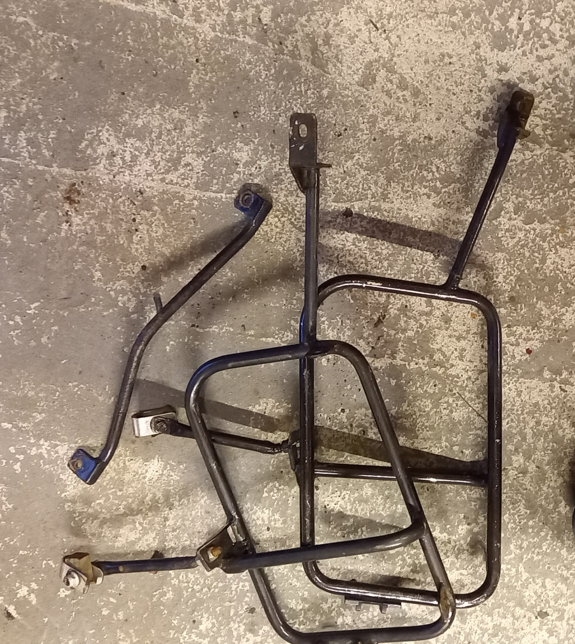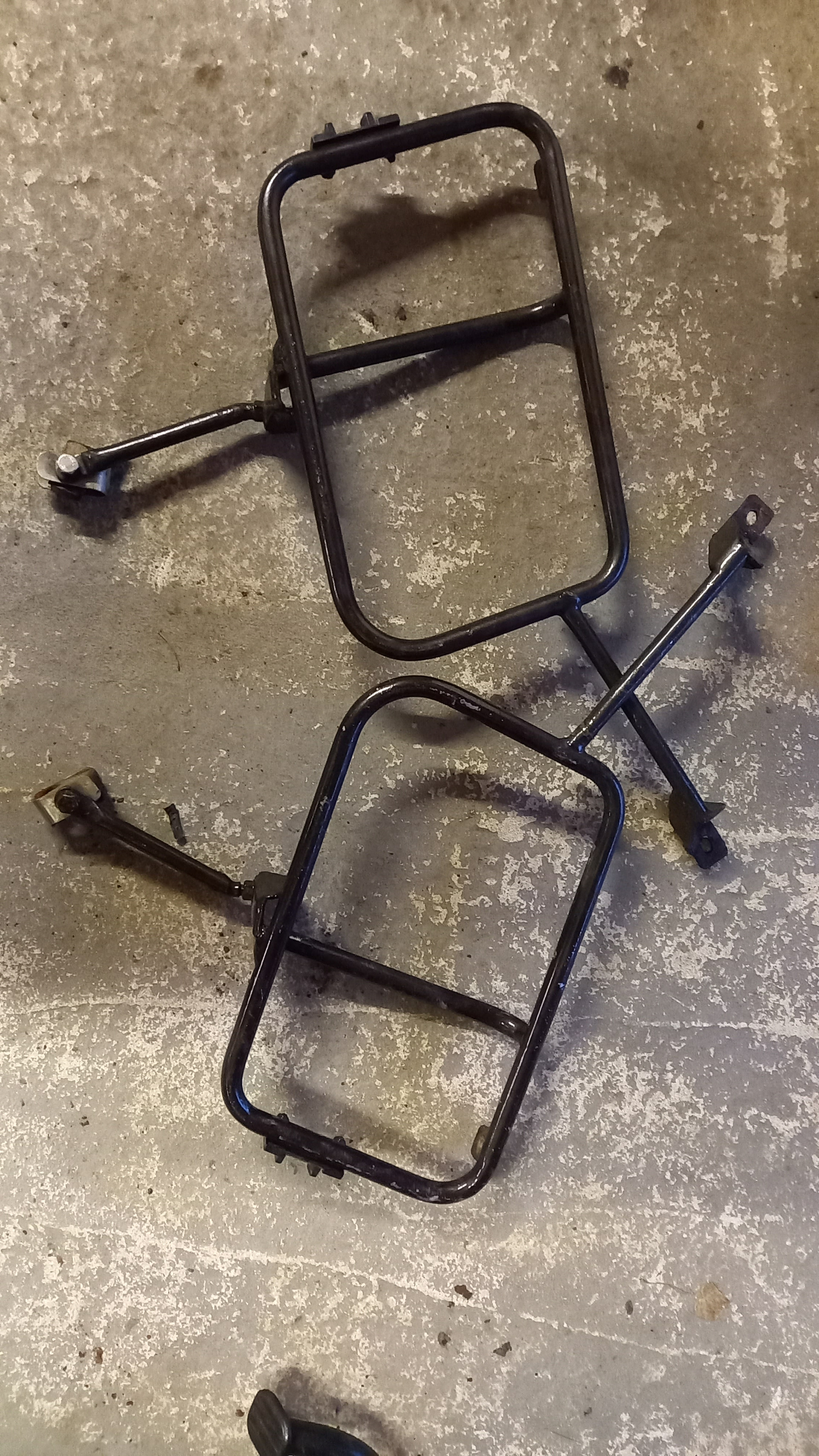 A used pair of pannier racks ,as removed from a 2011 nevada 750. Looks like they were chrome and have been painted black.