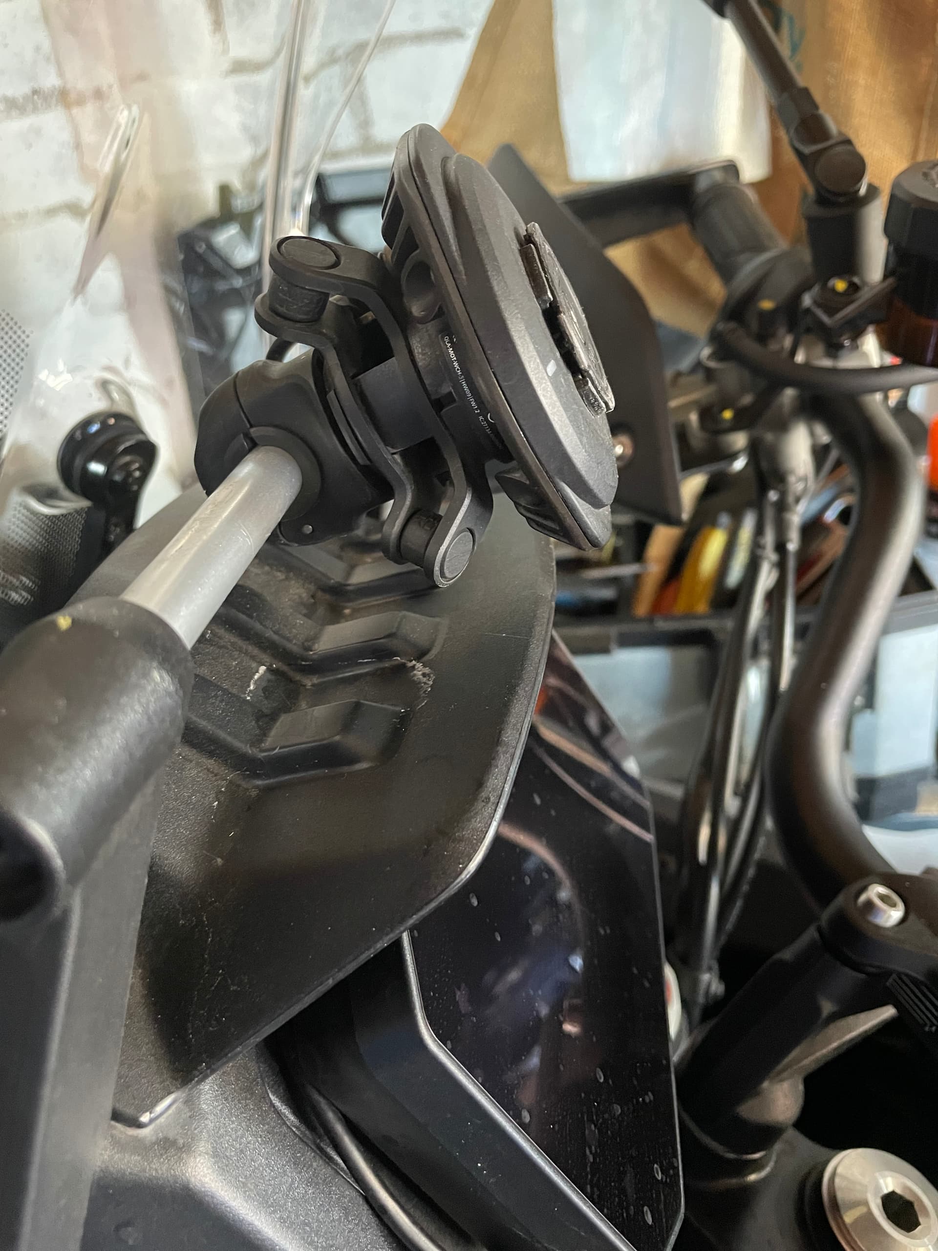 After getting hopelessly lost in deepest darkest mid-Wales I have decided I need a satnav. Are there any recommendations for quadlock mounts on the V85tt +5. I don’t really want it mounted on the mirror arms at it looks scarily vulnerable.