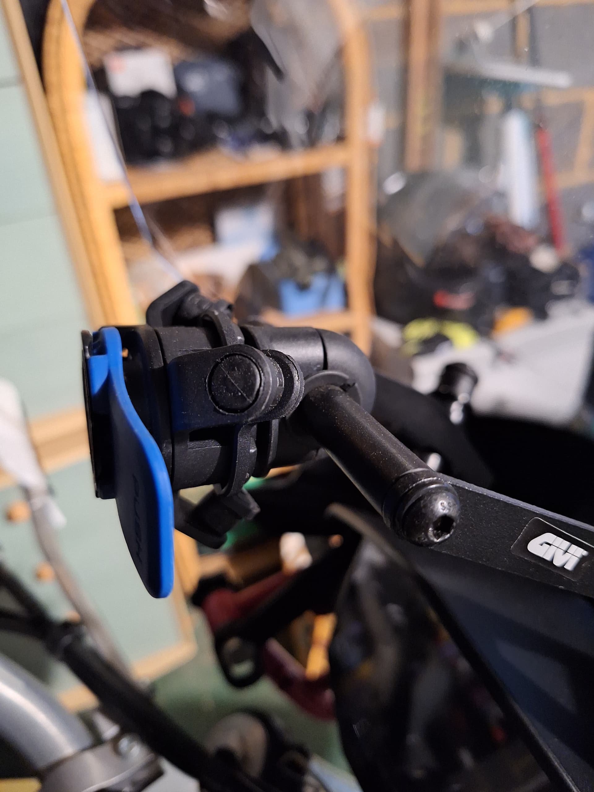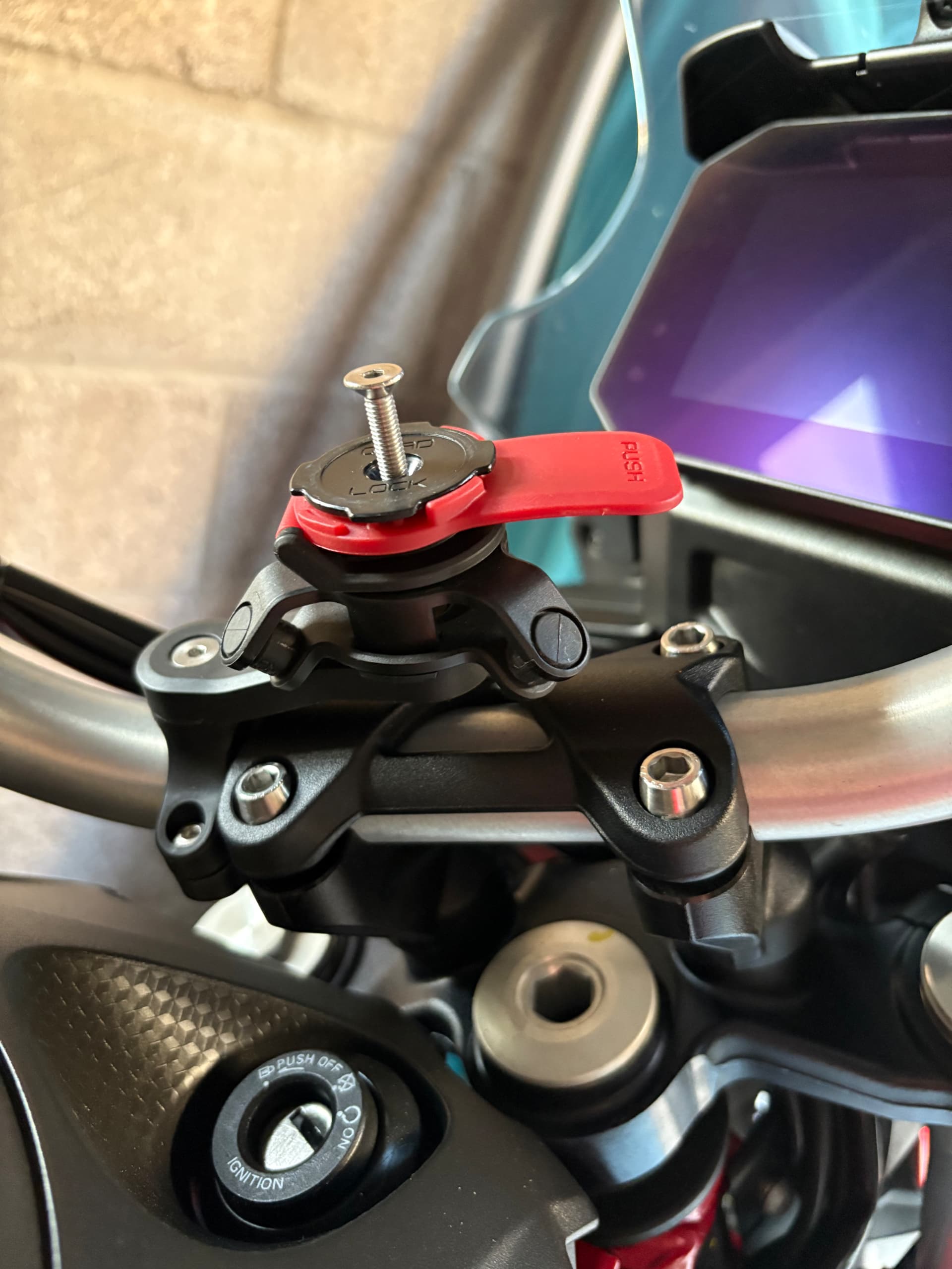 Just in answer to the original question, on all my bikes it tends to be left handlebar near top yoke clamp. This is the h/bar clamp type Quad Lock, comes with three different sizes of rubber reducers to match whatever diameter you’ve got. I can also use it on the bicycle. ![]()