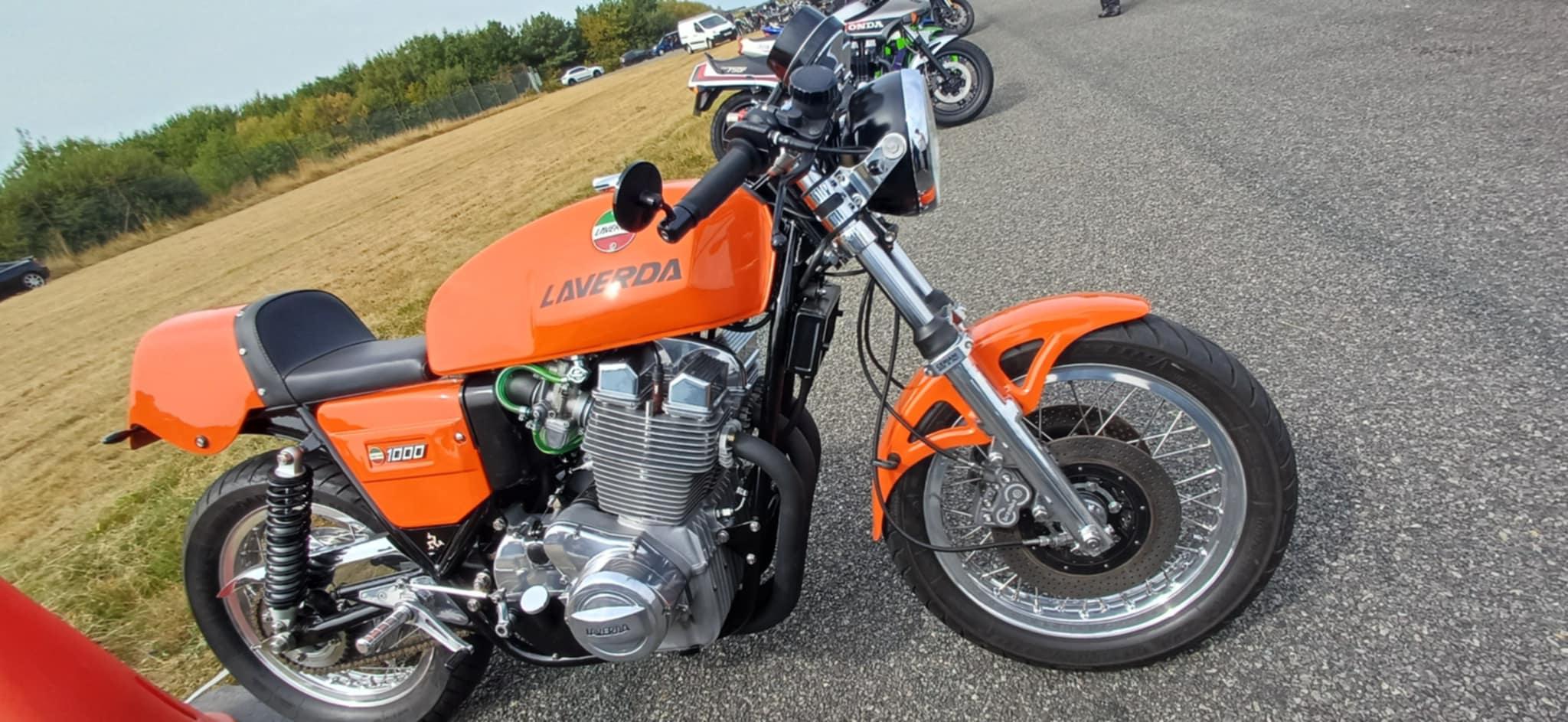 Welcome Neil.. a pal had a 750 Laverda, don’t see em often these days eh, or indeed any Laverda’s, (saw a nice one at the Manx last week though, see pic) I can vividly recall way back in the day watching a Jota eating up all comers as it came on cam down Park Straight at Cadwell.. great memories.