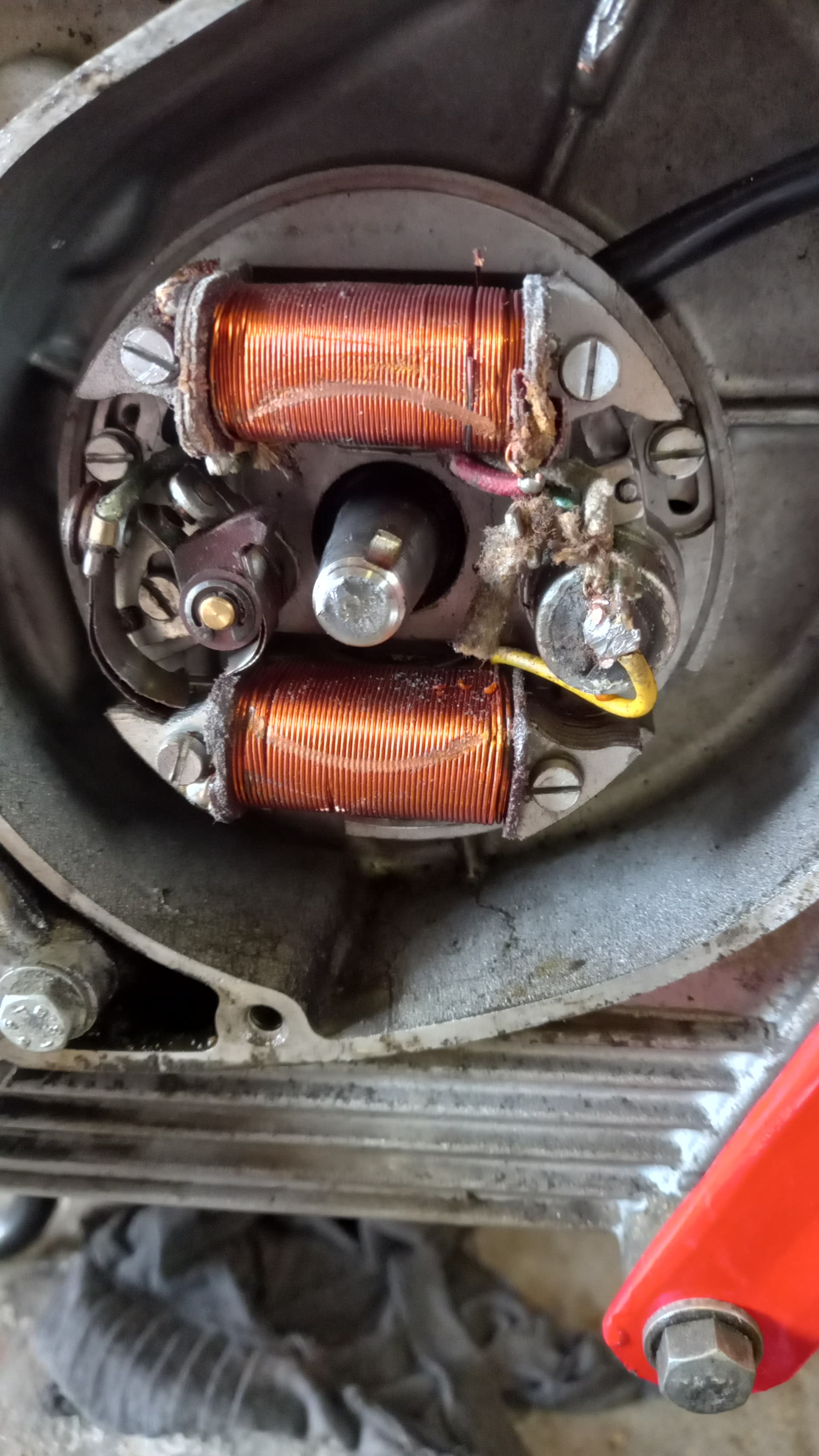 A quick update, found a mag spring and woodruff key, modified to fit, a rather expensive set of points from Italy ,and my rewound coil . Fitted back on engine, kicking over I get a voltage from the red and green wires to earth, and a good bright spark .A good day,