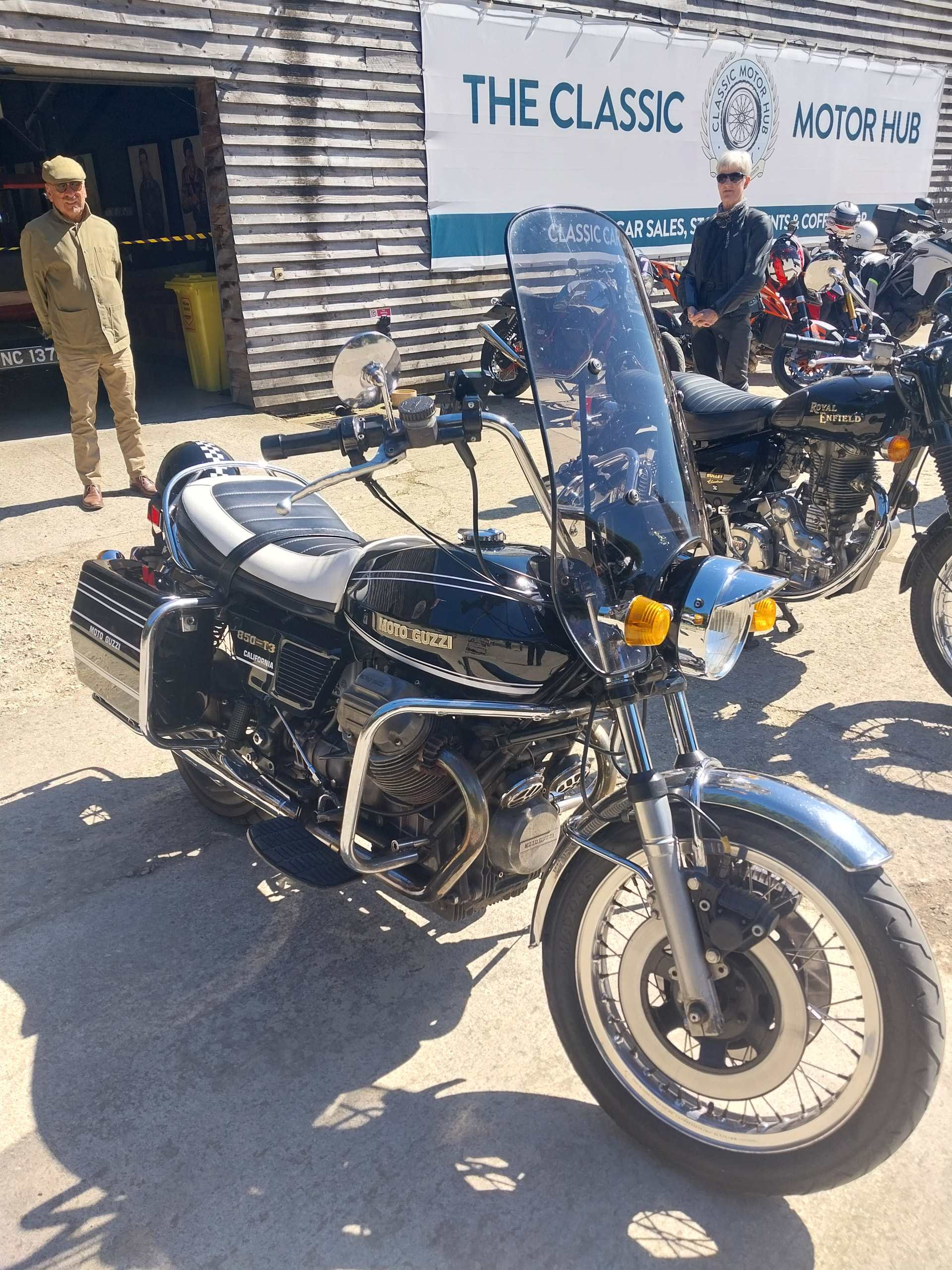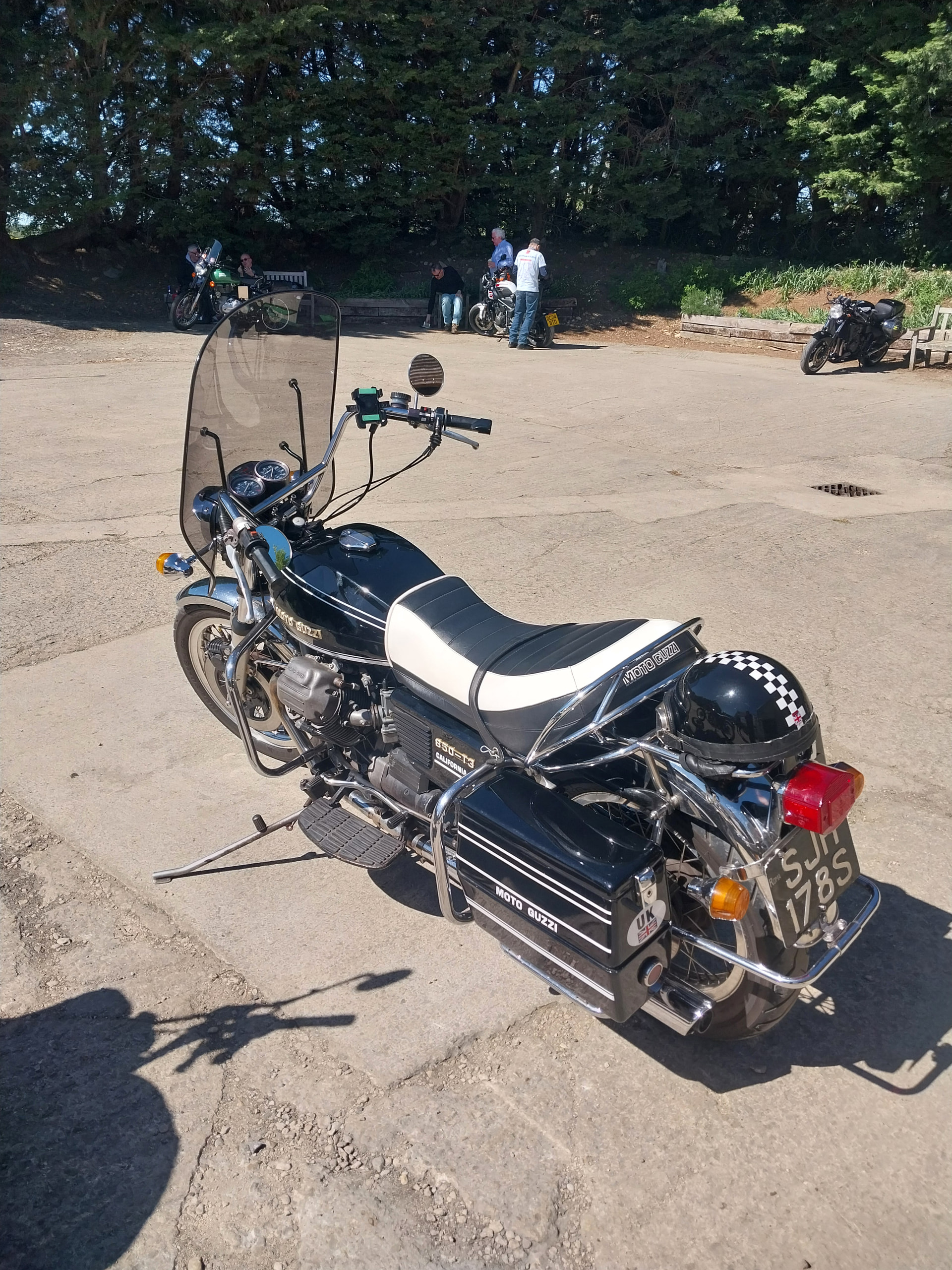 Hi all sad out for a run on my sp to the Motor hub af Bibury and spotted this lovely Cali,he’s owned it for 40yrs and it done over 200.000 miles,yep that’s a big number.the guy is at the back of his bike,with my lady to the right,I will mention that he’s not a member unfortunately.