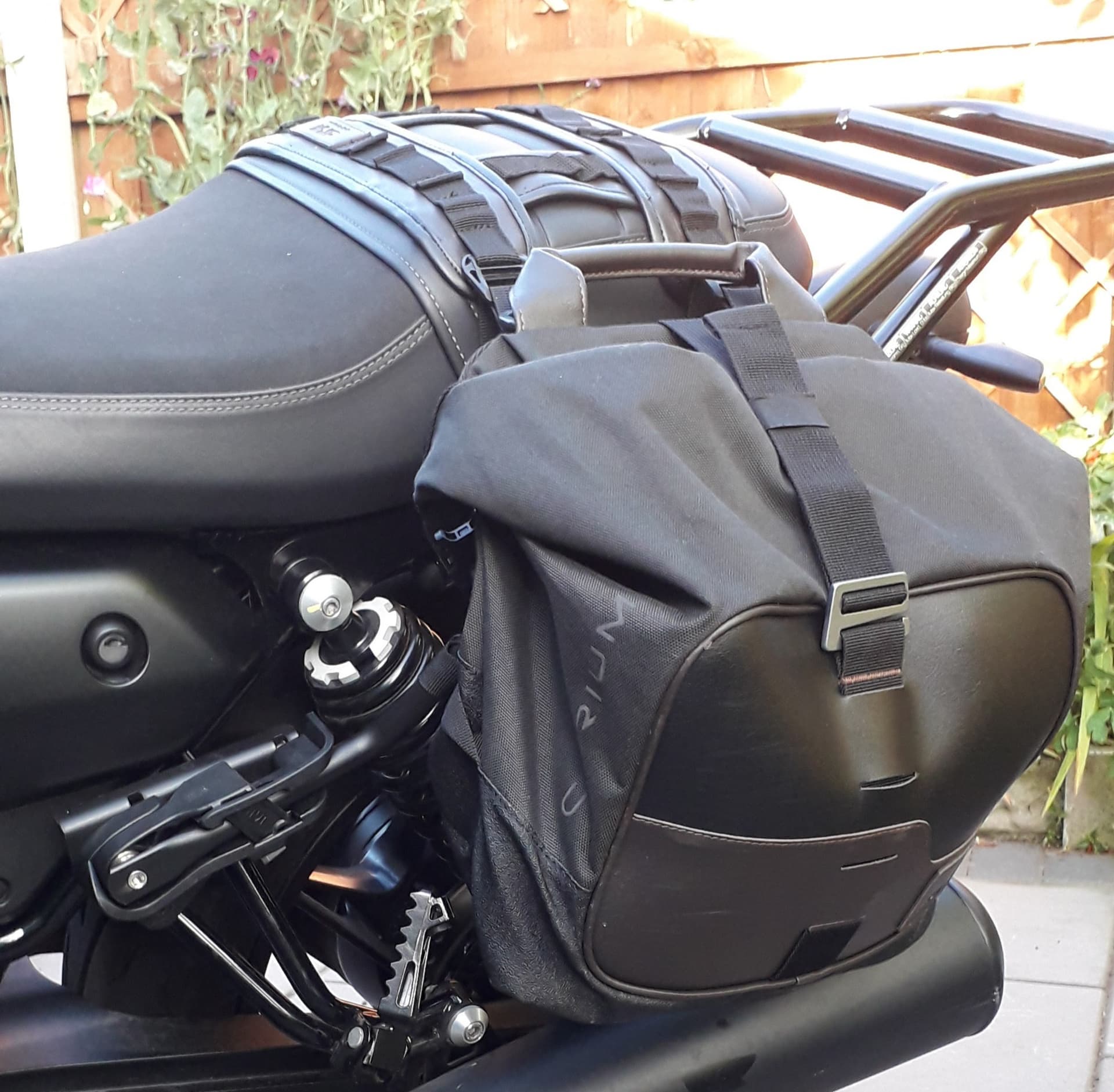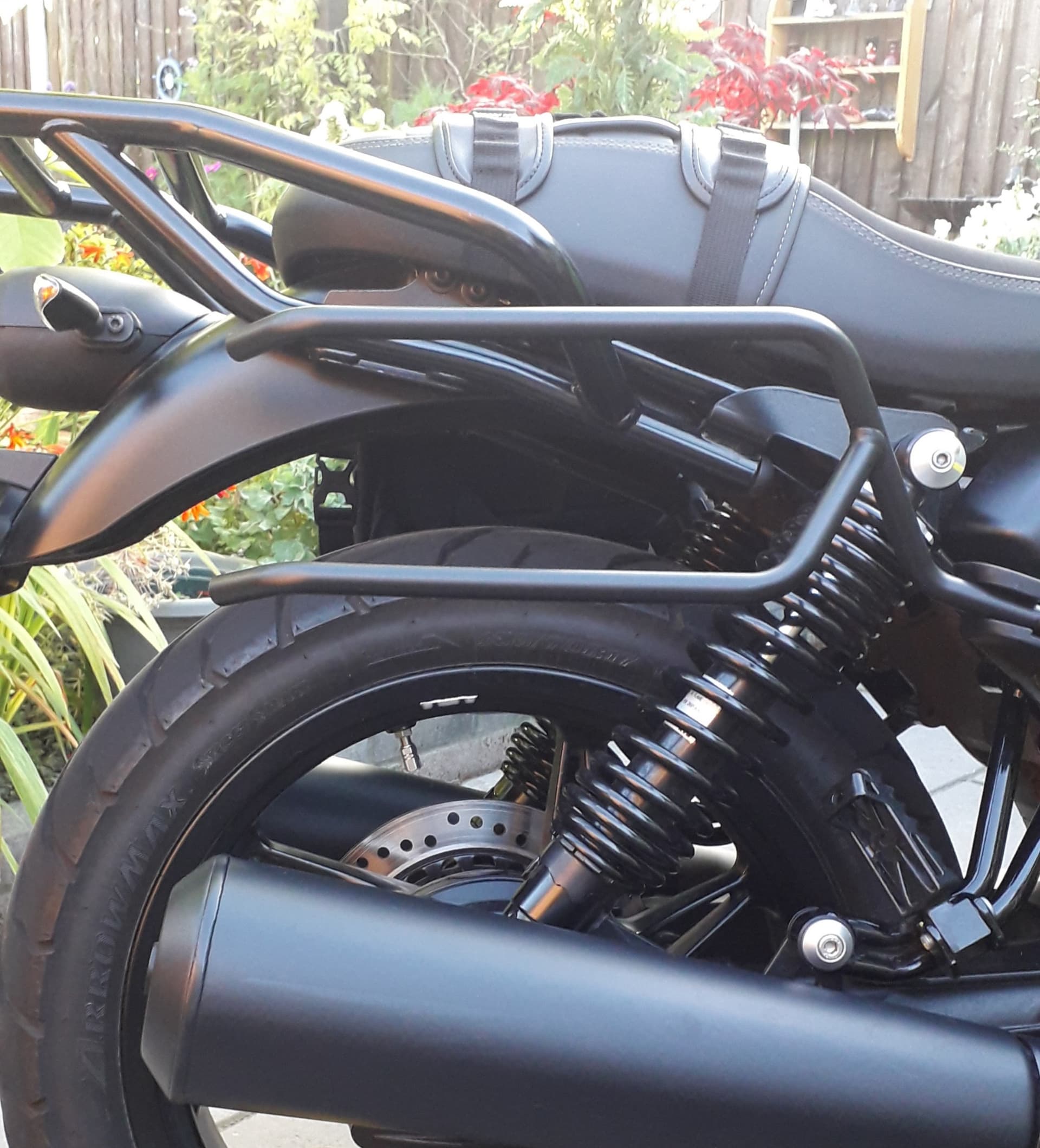 Here’s a couple of pics of my givi x release/16 ltr corium soft pannier bag on my V7. Easy to fit but you need to buy the saddle strap as well. Plus as extra assurance I use a couple of plastic ties that are fixed to the body of the bag in order to slide over the open sides of the frame. Looks nice and very handy for tool kit, puncture repair stuff, bottle of water and a bag of cheese n onion crisps ![]()