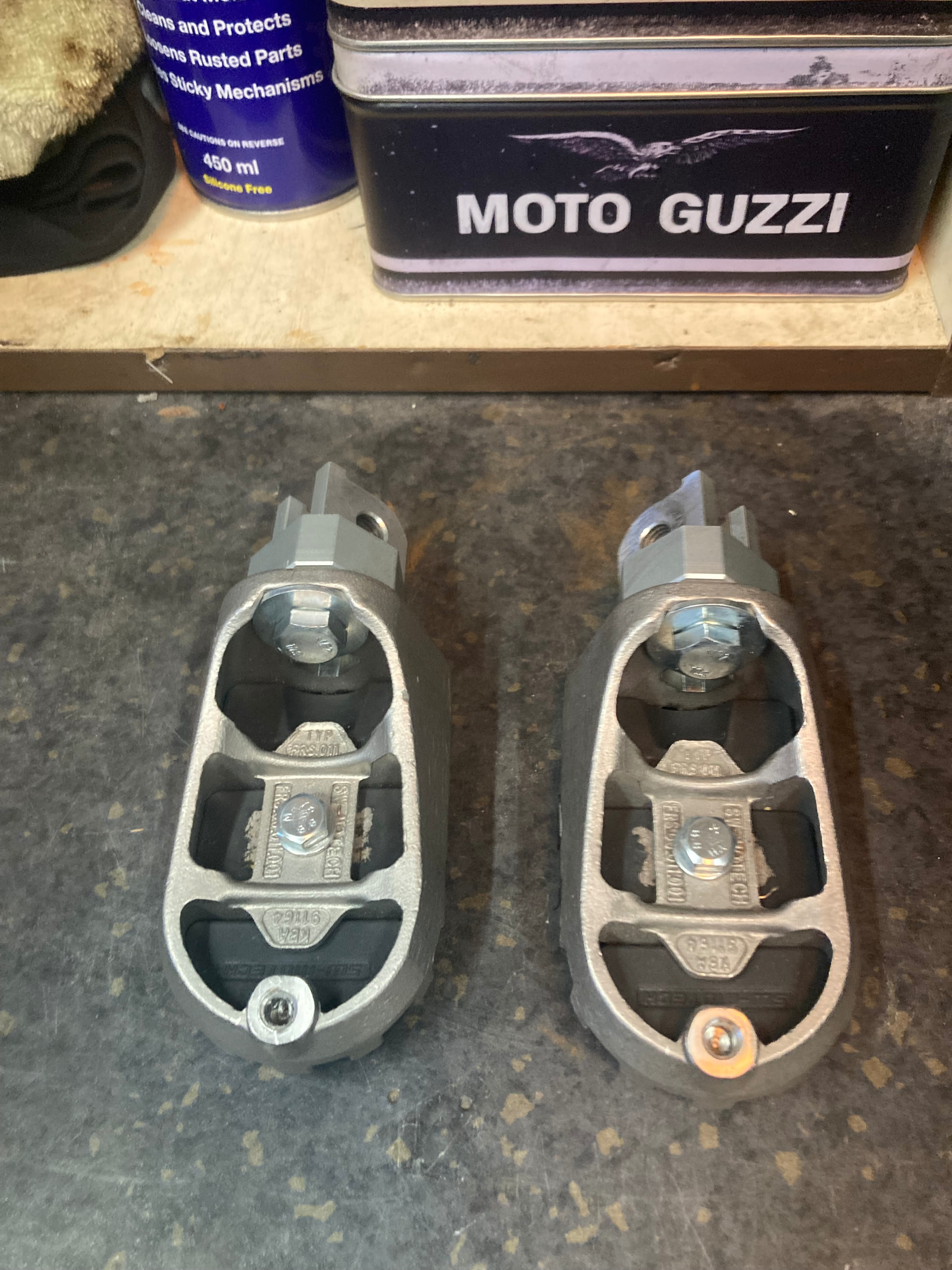 2. SW Motech Ion riders footrests. I bought these to fit to the pillion knowing they weren’t quite right. I managed to bolt them on and we went for one ride before removing them. Excellent condition £75 posted.