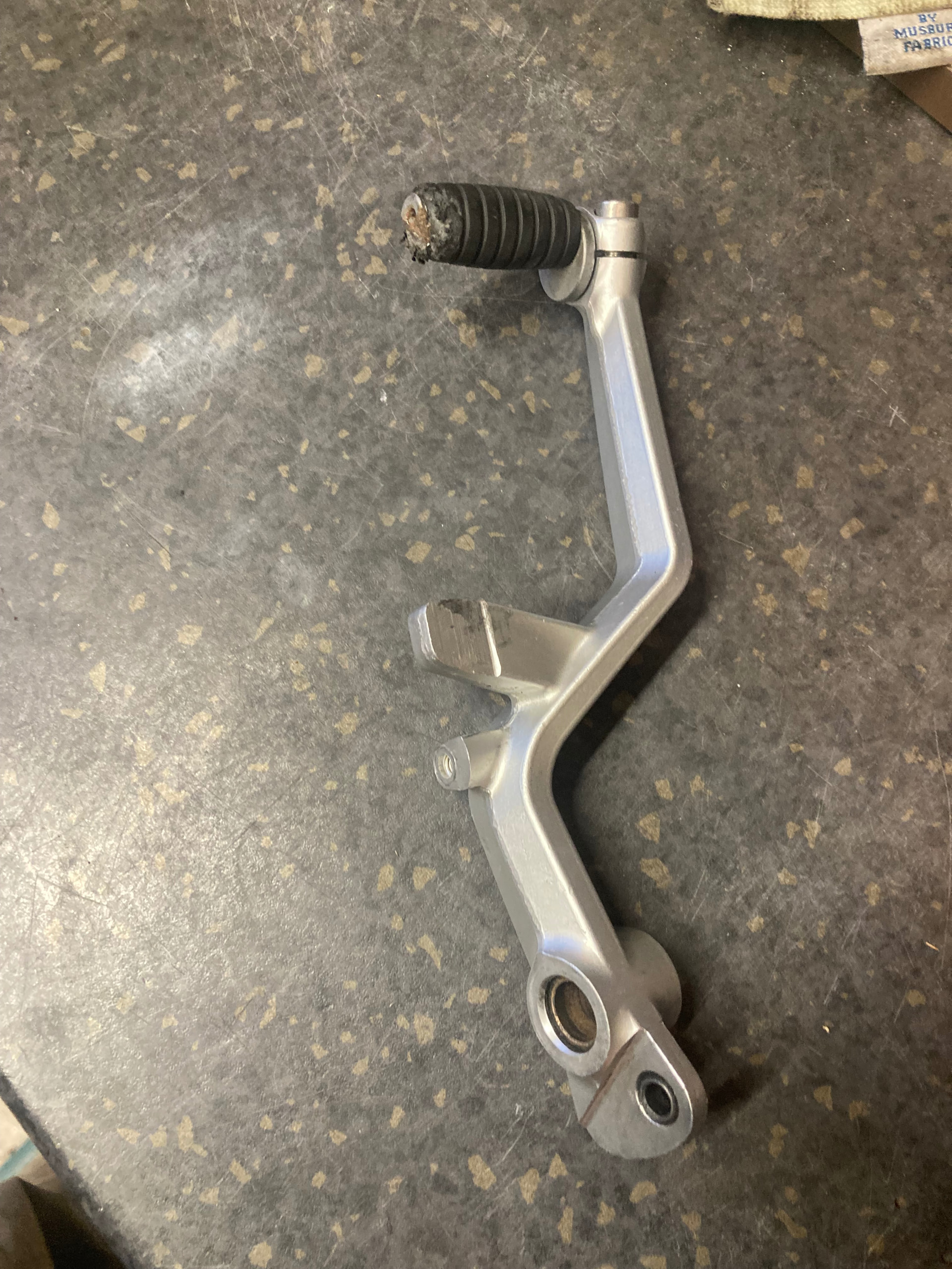 Gear lever. It’s been down the road but only the peg bit is damaged. Could be tidied up a bit or a new peg bit fitted. Keep as spare (that why I held on to it) or for off road use, or whatever. £20 posted.