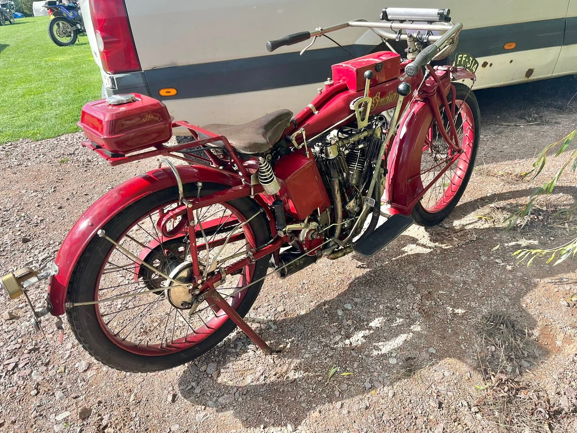 It’s not my Indian, it belongs to a fellow member of the Taverners section of the VMCC. It’s been in his family for around 60 years. His Dad rescued it from a front garden back in the 60’s. Apparently it came with a sidecar originally.